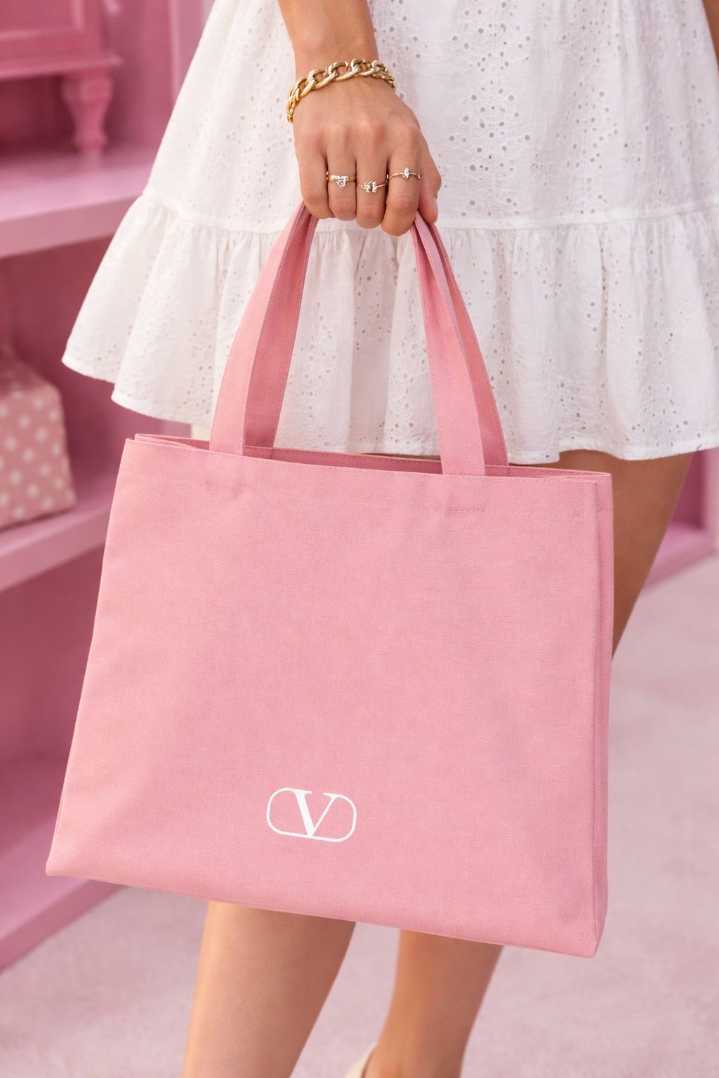 حقيبة Tote Bag (Valentino Beauty pink Canvas )